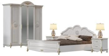 В данной комплектации спальня состоит из кровати 1800 с двумя прикроватными тумбочками и шкафа 4-х дверного.