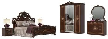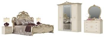 Практичный подход создателей мебели Грация к объединению в одном гарнитуре всех возможных требований к уютному комфорту в спальне – удался на славу! В данной комплектации Грация состоит из комода с зеркалом, шкафа 4-х дверного и кровати 1600 с двумя тумбами прикроватными. Изысканный декор спального гарнитура Грация органично соединяет затейливую рельефную лепнину и филигранный рисунок шелкографии.