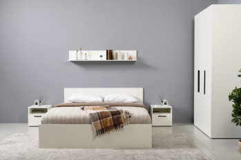 Спальня Эйр комплектация 1 — это готовое решение для создания уютного и функционального пространства в стиле минимализма. Комплект включает шкаф, полку, кровать и две прикроватные тумбы, что обеспечивает полную систему хранения и удобства в спальне. Модели выполнены в белом покрытии PE шагрень, что делает их универсальными и подходящими к любому интерьеру.