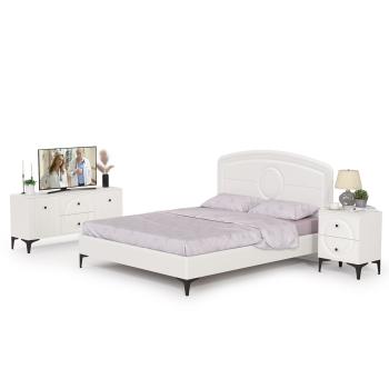 Гарнитур Mobi Валенсия № 39 отличается продуманной конструкцией и качественными материалами. Белый цвет в сочетании с фактурой "шагрень" создает элегантный внешний вид, который легко впишется в современный интерьер. Встроенная ТВ-тумба позволяет удобно разместить телевизор в спальне, а прикроватная тумба обеспечит место для хранения мелочей.