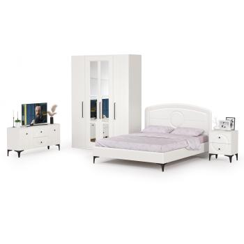Спальня Валенсия № 43 от бренда Mobi – это гармоничный комплект мебели, который создаст уютную атмосферу в вашей спальне. В набор входит 6 предметов: кровать, прикроватная тумба, шкаф для одежды, два пеналы и ТВ-тумба. Все элементы выполнены в едином стиле и цвете – белый шагрень, что придает интерьеру элегантность и легкость.