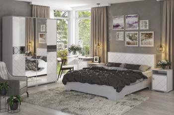 Изголовье кровати изготовлено из МДФ с характерным графическим узором.