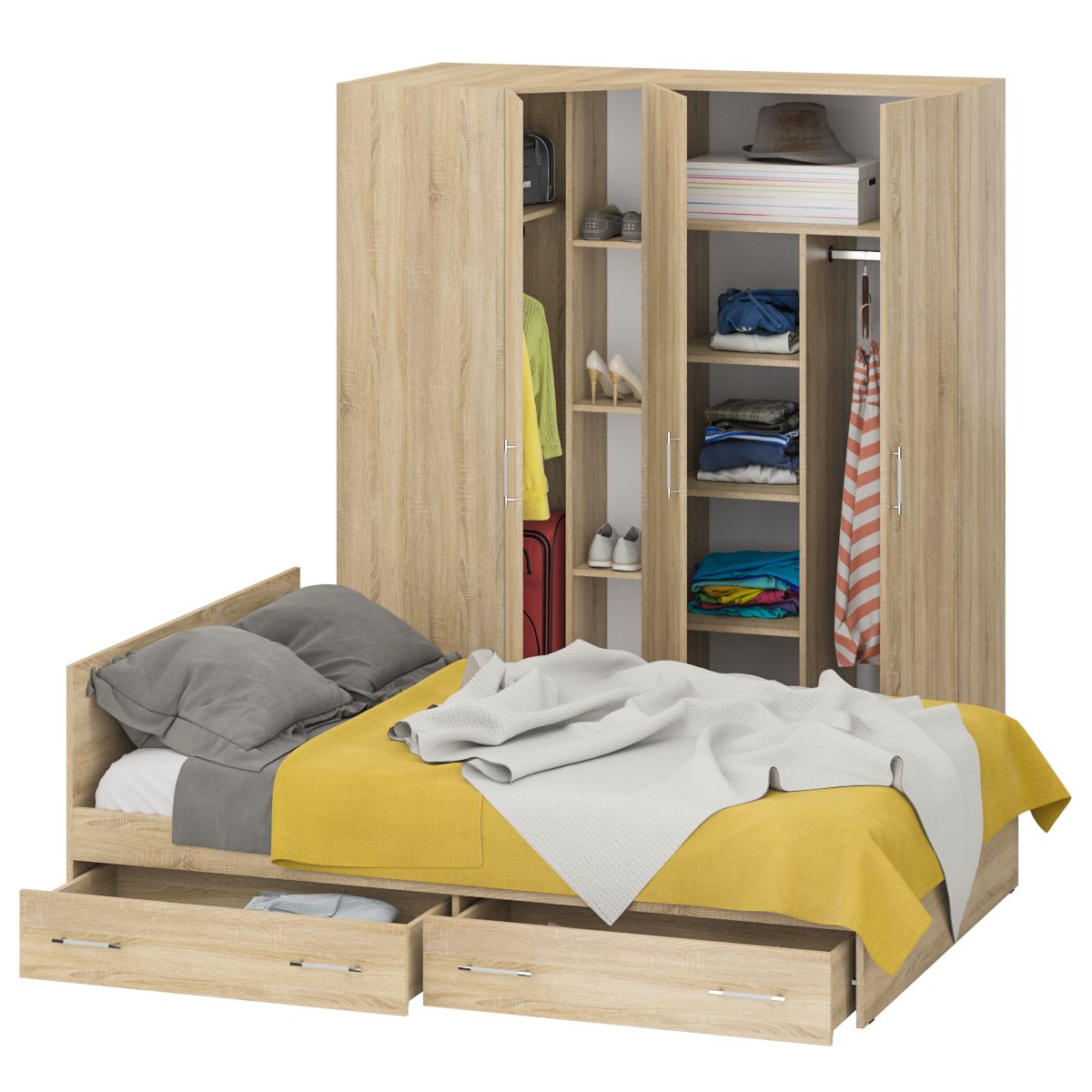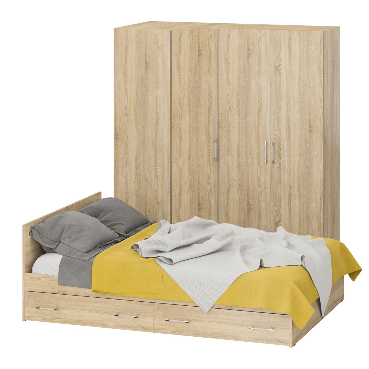 Спальня Стандарт 2-1400Я, ШхГхВ 143,5х203,5х70 + 171,2х81,2х200 см., сп.м. 1400х2000 мм., без матраса, основание есть