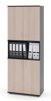 Стеллаж входит в универсальную линейку, каждая модель которой может быть дополнена дверцами (сверху и снизу) и ящиками (по центру). Для этого на боковых стенках есть присадки (небольшие несквозные углубления), которые предназначены для крепления дверей и ящиков. В каталоге вы можете выбрать наиболее подходящую комплектацию.