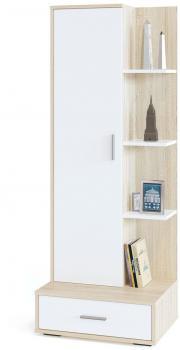 Система хранения в этой модели представлена в виде закрытого отделения с 4 полками, образующими 5 ниш, выдвижного ящика на шариковых направляющих, а также открытой части, состоящей из 4 полок. Такое решение позволяет размещать на стеллаже не только книги или папки, но и различные элементы декора.