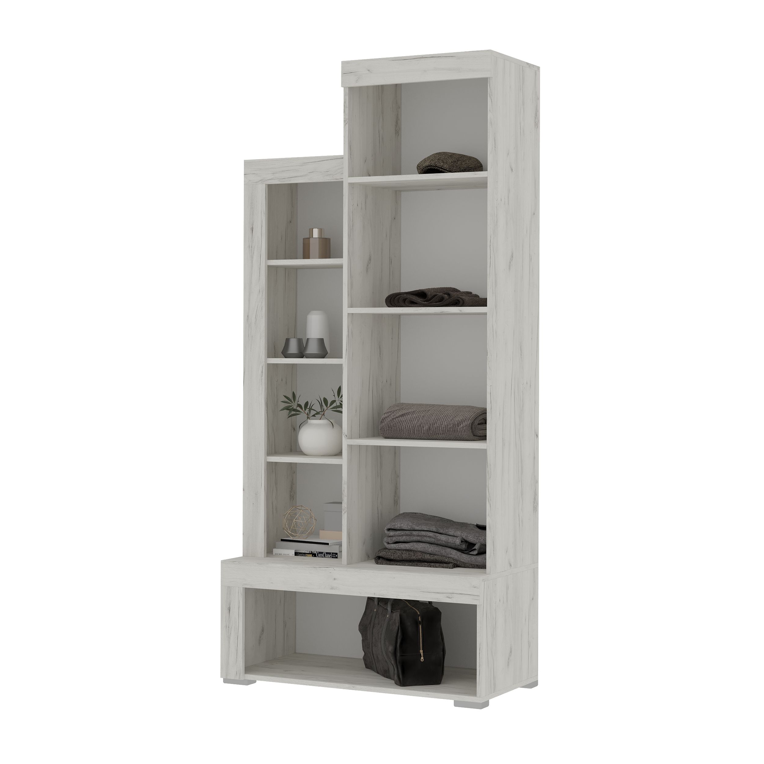 Отличительная черта сквозной коллекции Гранд – простота и четкость линий. Прямолинейный дизайн мебели разработан в декоре Крафт белый, напоминающий покрытое прозрачным слоем краски текстурное дерево.