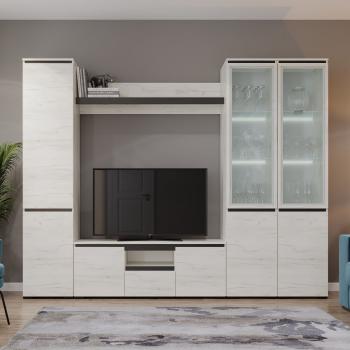 Купить полку «Памир Гретта» в Москве можно, оформив заказ на нашем сайте. Длина модели составляет 270 см, высота — 212 см, а глубина — 51 см, что позволяет разместить до 12 мест. Цвет каркаса — дуб крафт белый, а фасады выполнены в крафт белом и антрацитовом оттенках.