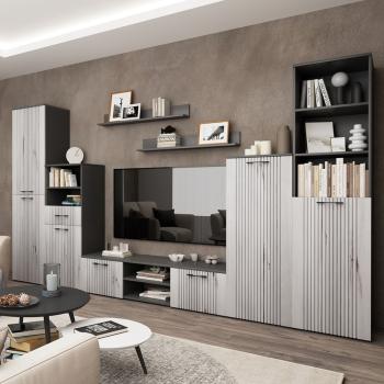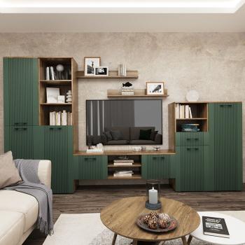 Изготовленная из ЛДСП, стенка обладает каркасом, который обеспечивает долговечность. Фасады выполнены из МДФ и ПВХ, что делает их устойчивыми к повреждениям и легкими в уходе. Задние стенки и дно ящиков изготовлены из ЛХДФ, что добавляет дополнительную прочность конструкции.