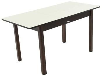 Ножки изготовлены из массива березы. Раздвижная столешница – плита ЛДСП покрыта закаленным стеклом (4 мм), дополняется специальной вставкой – бабочкой, с помощью которой длина столешницы увеличивается на 31,5 см. Вставка хранится под столешницей на специальном пандусе. Синхронный механизм трансформации позволяет раздвинуть столешницу одной рукой.