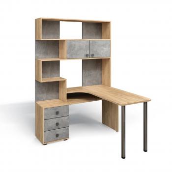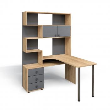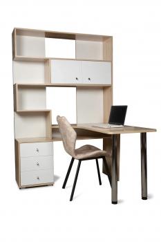 Компьютерный стол СК-10 отличается большой рабочей поверхностью, есть три вместительных ящика, просторные открытые полки над столом для бумаг, книг и всегда нужных мелочей, и закрытые полки для документов.