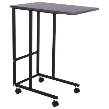Прочный стальной каркас выполнен из профильных труб сечением 20х20 мм, 20х10 мм. Металлические части защищены стойким полимерным покрытием черного матового цвета. Столешница выполнена из ЛДСП с прочной кромкой ПВХ. Роликовые опоры делают стол мобильным, изготовлены из пластика, что защищает пол от повреждений.Максимальная нагрузка на столешницу – 20 кг. Поставляется в разобранном виде в компактной картонной таре.