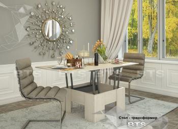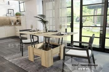 Стол-трансформер может стать полноценным столом для гостиной и кухни. Благодаря современному дизайну он гармонирует с другой мебелью. Механизм трансформации и легкая конструкция стола экономят пространство дома. Если к Вам нагрянули гости, то Вы всего за одну минуту можете изменить размер стола в нужно Вам варианте.