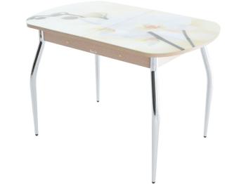 Кухонный стол ДМФ Аврора Ривьера с фотопечатью Цветы-5 станет ярким акцентом в вашем интерьере. Столешница выполнена из качественного материала с оригинальным изображением, что придаёт изделию уникальность и стиль. Подстолье изготовлено из ЛДСП толщиной 18 мм, что гарантирует прочность и долговечность конструкции.