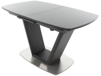 Кухонный стол ДМФ Аврора «Севилья MODERN» с черной стеклянной столешницей OPTI станет стильным акцентом в вашем интерьере. Его уникальная конструкция включает V-образную опору из МДФ, окрашенную в цвет подстолья, к которой надежно крепится столешница. Стол раздвижной, оснащенный автоматическим механизмом раскладки, увеличивающим столешницу на 22 см, что делает его удобным в использовании.