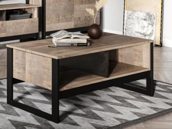 Стол выполнен в цвете «Дуб Гранж», который имитирует ручную обработку дерева и обладает выразительной текстурой. Серый оттенок «Железного камня» с металлическими разводами и новая текстура состаренной штукатурки создают индустриальный стиль. Оригинальные ножки из МДФ контрастного цвета добавляют изюминку в общий вид.
