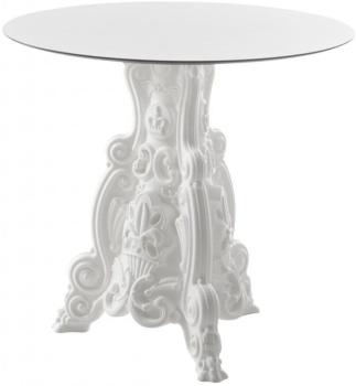 Lord of Love – стол, напоминающий итальянский стиль барокко, богатый деталями. Стол элегантный благодаря сочетанию различных материалов: основание из полиэтилена, которое напоминает попсовый, винтажный и ироничный стиль всей коллекции Design Of Love, в то время как белая столешница выполнена из HPL, что придает нотку изысканности Lord of Love. Это стол, идеально подходящий для оригинальных проектов Contract и незабываемых событий, потому что стол современный, красочный и элегантный одновременно, и он идеально подходит для внутренних и наружных условий. Он доступен также в светящейся версии.