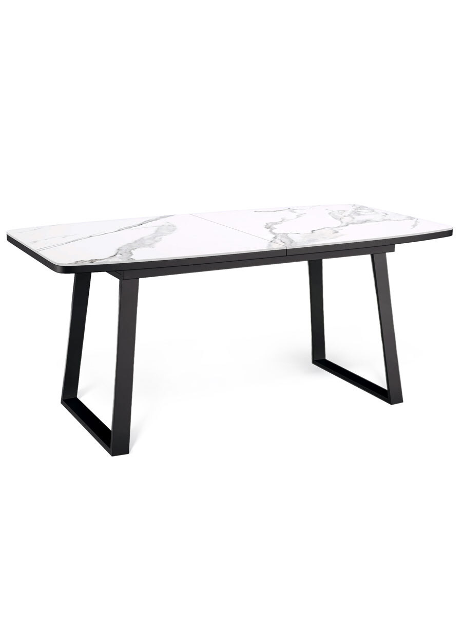 Стол KENNER AZ1400 цвет черный, столешница – керамика белая. Стильные, дизайнерские столы для дома. Фабрика “Кеннер”. Гарантия качества. Быстрая доставка по РФ. Очень функциональный и удобный стол на надежном металлическом основании. Столешница с травмоопасными, скругленными краями, металлическая рама, которая полностью прячется под столешницей и оставляем максимальное место для ног, надежные и устойчивые опоры из стального профиля размером 60*30 мм, которые расположены таким образом, что позволяют поставить 2 больших стула по широкой стороне стола и 1 широкий стул по узкой стороне стола. Оптимальный выбор для современной кухни