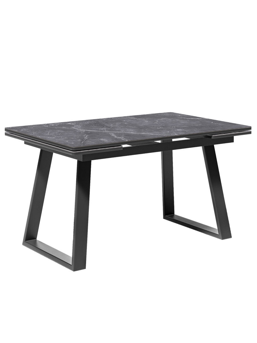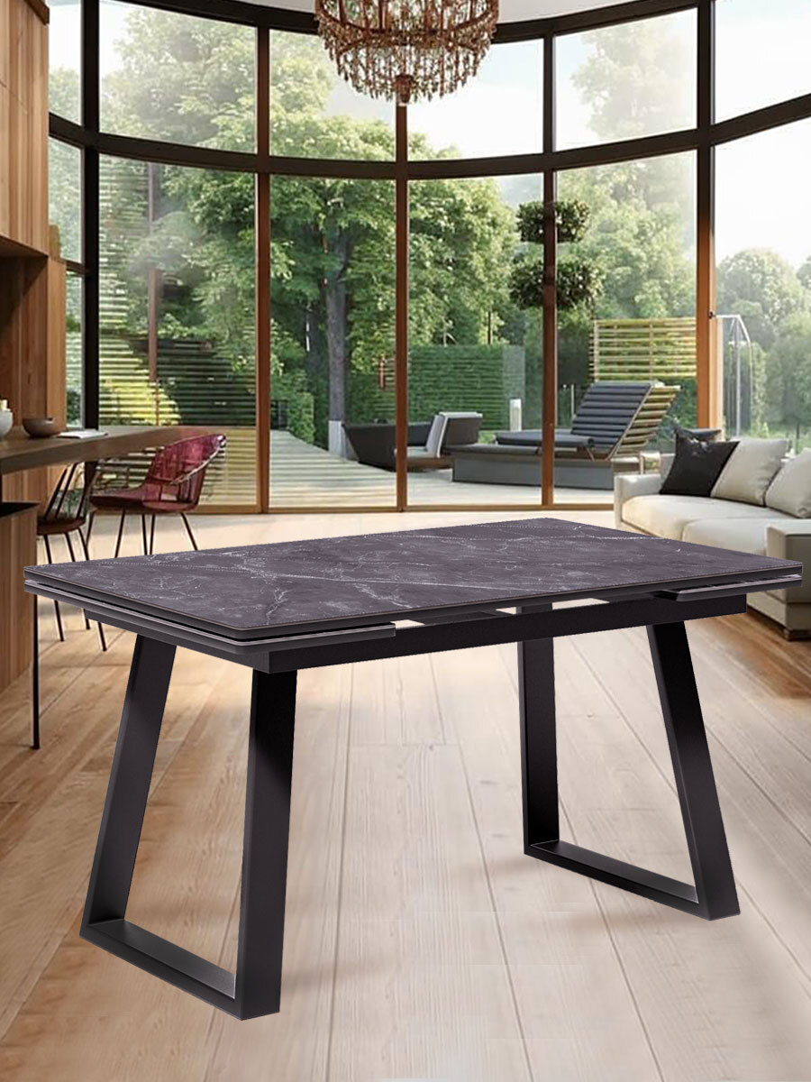 Большой, роскошный стол на центральных металлических опорах большого сечения и керамической столешницей с декором “мрамор золотой”. Стол спокойно размещает 8 человек в сложенном состоянии и 12 в разложенном. Большим преимуществом стола является торцевой механизм раскладки. Это собственная разработка “КЕННЕР”. Механизм не перекашивается при открывании одной рукой, на каждое крыло может спокойно опереться человек, ширина вставки 250 мм каждая, таким образом, общая ширина стола в разложенном виде 2,1 метра!