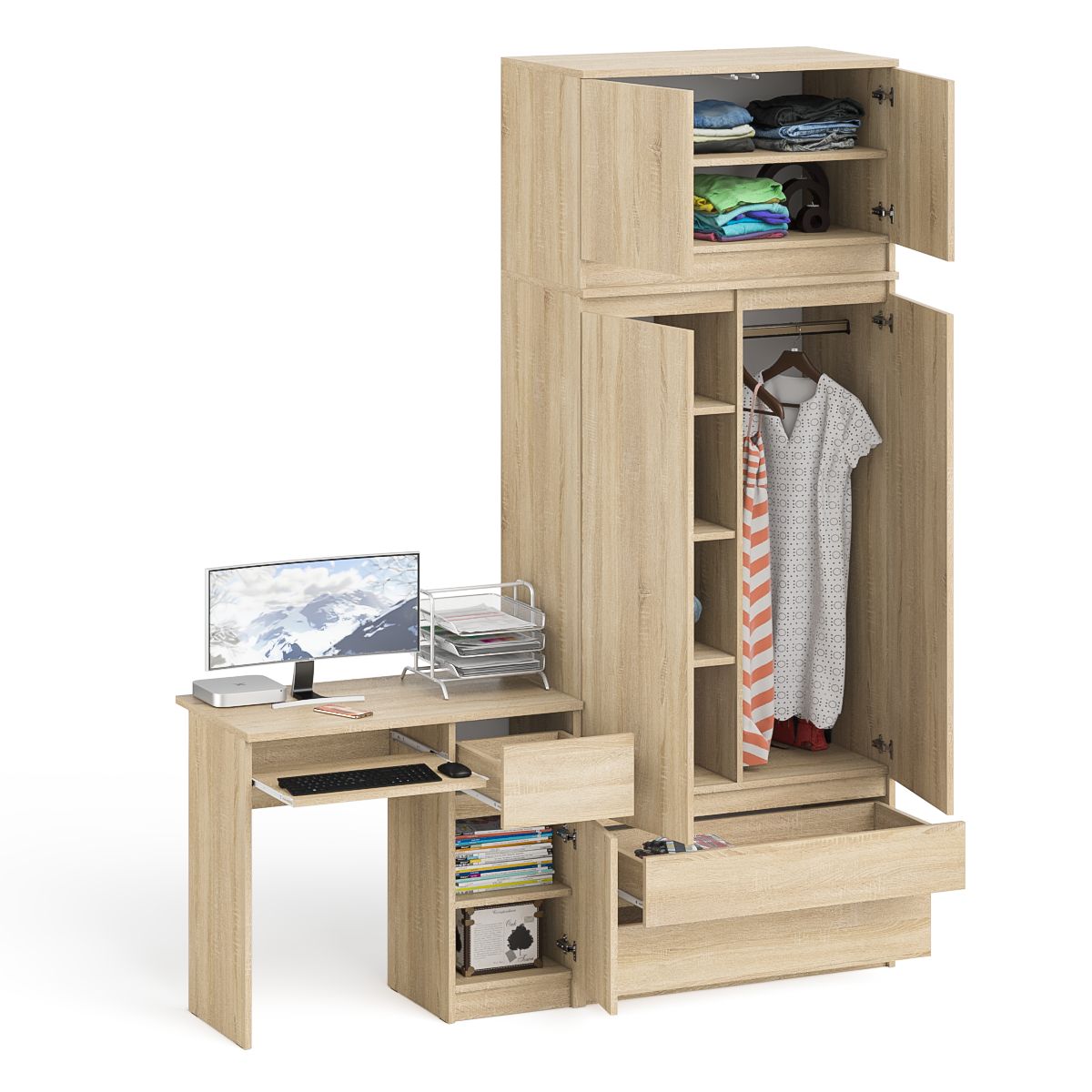 Стол компьютерный СВК Мори МС-1 правый + Шкаф МШ900.1 + Антресоль МА900.1