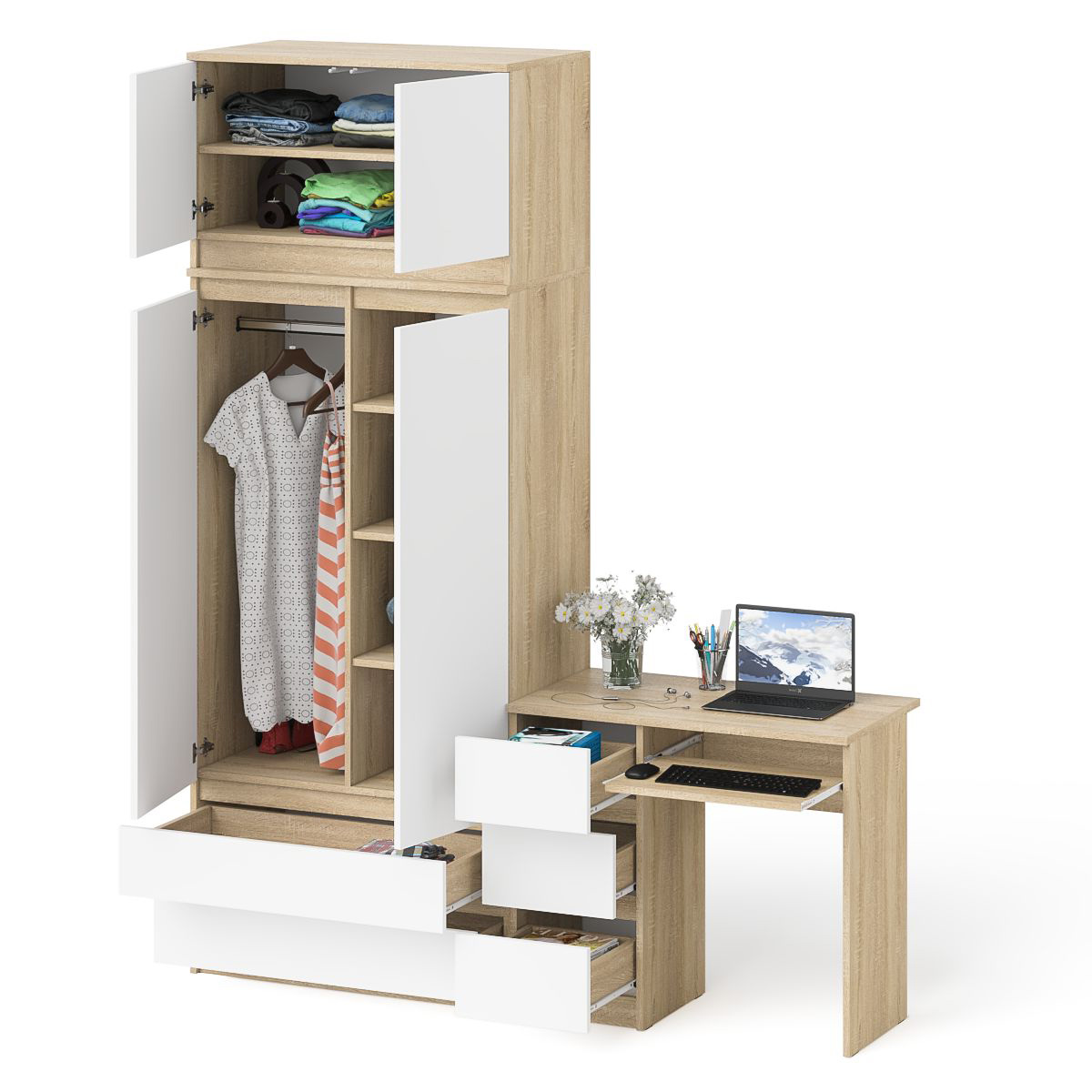 Стол компьютерный СВК Мори МС-6 левый + Шкаф МШ900.1 + Антресоль МА900.1