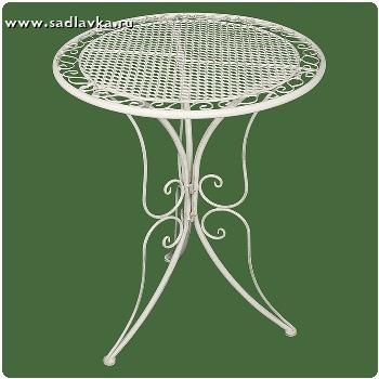 Металл, стол разбирается, обработано белой краской с золотой патиной, обработано белой краской с золотой патиной, размер стола 61х61х74см.