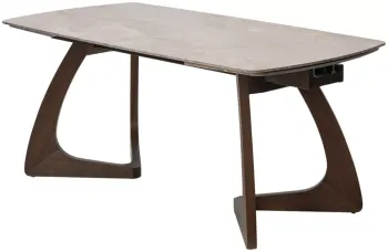 Материалы: Глянцевая керамическая столешница (толщина 12 мм), металлическая рама, ножки из массива березы со шпоном.