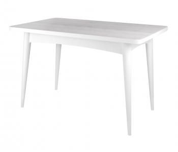 Раскладной обеденный стол. Цилиндрические ножки изготовлены из массива, столешница – ЛДСП 32 мм с кромкой ПВХ 2 мм. Углы столешницы закруглены. С помощью синхронного механизма и специальной вставки стол раскладывается до 170 см в длину.Габаритные размеры (см):