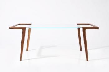 Обеденный стол из массива ясеня. Элегантные изгибы ножек и выделенные стыки придают изящество столу. масло и каленое стекло завершают изделие.