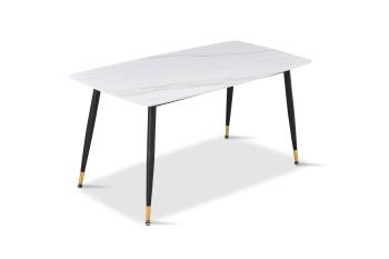 Кажущаяся простота дизайна этого стола, компенсируется качеством материалов. Прочность и надежность стола обеспечиваются использованием керамогранита для столешницы и металла для ножек.