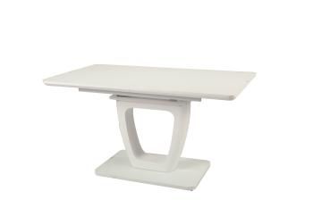 Раскладной обеденный стол. Столешница закаленное матовое стекло на МДФ. Каркас крашеное МДФ. Основание из МДФ + 4мм матовое стекло. Механизм трансформации «бабочка».