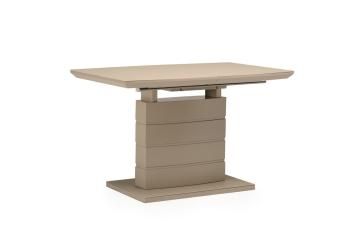 Раскладной обеденный стол. Каркас и вставка МДФ матовый крашеный. Столешница 4мм закаленное матовое стекло. Основание ножки МДФ + 4мм матовое стекло. Механизм трансформации «бабочка».
