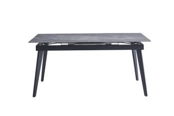Раскладной обеденный стол. Столешница с автоматическим раздвижным механизмом. Столешница керамика 12мм с принтом Rebecca grey под серый мрамор. Каркас и ножки металлические черного цвета.