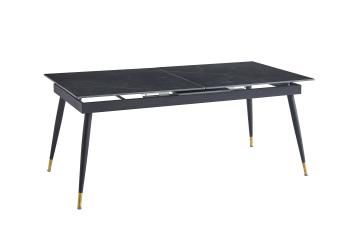 Раскладной обеденный стол. Столешница с автоматическим раздвижным механизмом. Столешница керамика 12мм с принтом Shashi black. Каркас и ножки металлические черного цвета. Ножка имеет Chrome gold вставку на основании