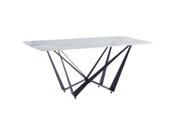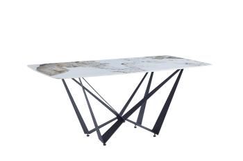 Стол обеденный с прямоугольной столешницей из керамики 12мм с принтом. Каркас и ножки металлические черного цвета.