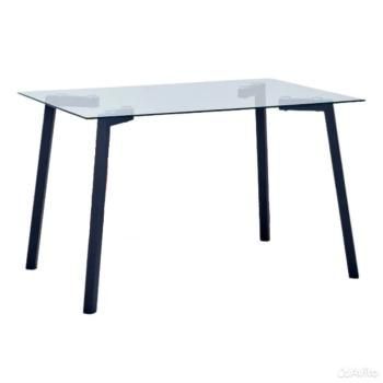 Стол обеденный с прямоугольный столешницей из закаленного стекла.