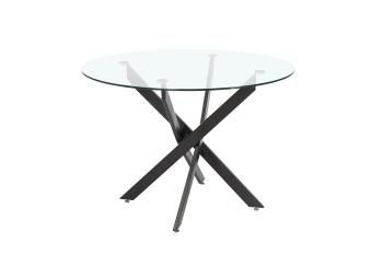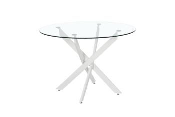Стол обеденный с круглой столешницей из закаленного стекла. Металлические ножки.