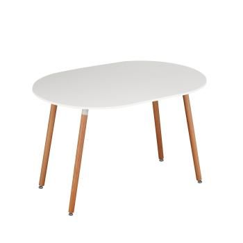 Стол обеденный из высокотехнологичного материала с прямоугольной столешницей из крашеного МДФ.