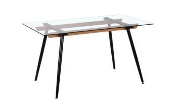 Стол обеденный с прямоугольный столешницей из закаленного стекла.