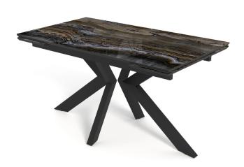 Две вставки по краям столешницы по 30см. Столешница – стекло + МДФ. Основание стола – металл.
