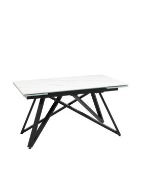 Обеденный стол Канкун с раскладной столешницей. Прямоугольная столешница выполнена из керамики с красивым рисунком под мрамор. Материал долговечен, устойчив к термическим и механическим воздействиям. При необходимости длину стола можно увеличить с 140 см до 180 см за счет спрятанных по бокам раздвижных элементов. Раздвижной механизм прост в использовании и не требует много времени для сборки. Рекомендованная нагрузка на столешницу 40 кг, а на выдвижные элементы 10 кг. Металлические ножки надежно удерживают всю конструкцию и придают столу оригинальный вид. Обеденный стол Канкун впишется в любой интерьер в современном стиле и станет украшением кухни и обеденной зоны.