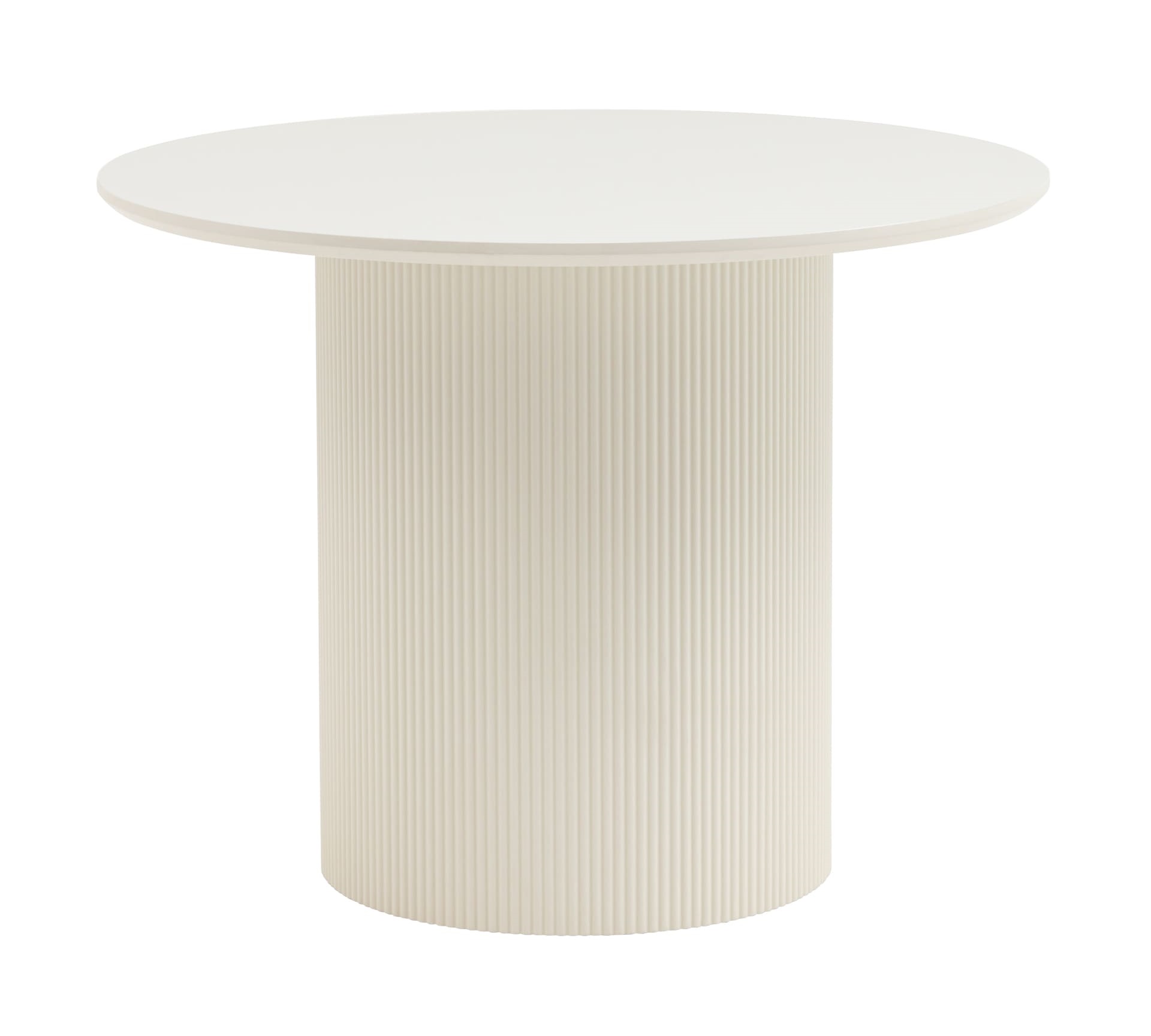 Столешница выполнена из прочного и долговечного МДФ. Светлая поверхность столешницы гармонично сочетается с массивной основой серого цвета. Простая круглая форма стола позволит легко вписать его в современный интерьер, стол украсит кухню, гостиную или современное кафе, ресторан. Опорное плиссированное основание стола в лаконичном дизайне надёжно удерживает всю конструкцию и дополняют монолитный образ.