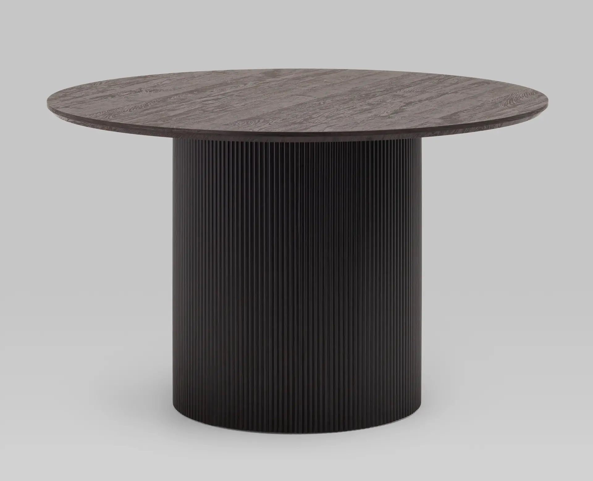 Столешница выполнена из прочного и долговечного МДФ. Светлая поверхность столешницы гармонично сочетается с массивной основой серого цвета. Простая круглая форма стола позволит легко вписать его в современный интерьер, стол украсит кухню, гостиную или современное кафе, ресторан. Опорное плиссированное основание стола в лаконичном дизайне надёжно удерживает всю конструкцию и дополняет монолитный образ.