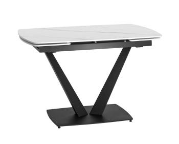 Лаконичный обеденный стол Клео с рисунком белого мрамора. Столешница из керамики отличный вариант для кухни. Материал знаменит прочностью и долговечностью, поверхность устойчива к различным внешним воздействиям. Компактный размер позволяет экономить пространство. Благодаря спрятанным по бокам элементам можно увеличить полезную площадь стола до 30 или 60 см. Металлический каркас черного цвета гармонично сочетается с цветом столешницы. Ножки V-формы надежно удерживают всю конструкцию. Основание каркаса оснащено заглушками, которые не позволяют металлическим частям соприкасаться с полом и портить покрытие при перемещении.