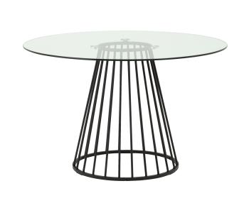 Стильный стол с металлическим основанием. Круглая столешница выполнена из прочного закаленного стекла. Она идеально сочетается с металлическим основанием. Защитные подпятники в основании предотвращают повреждения напольного покрытия.