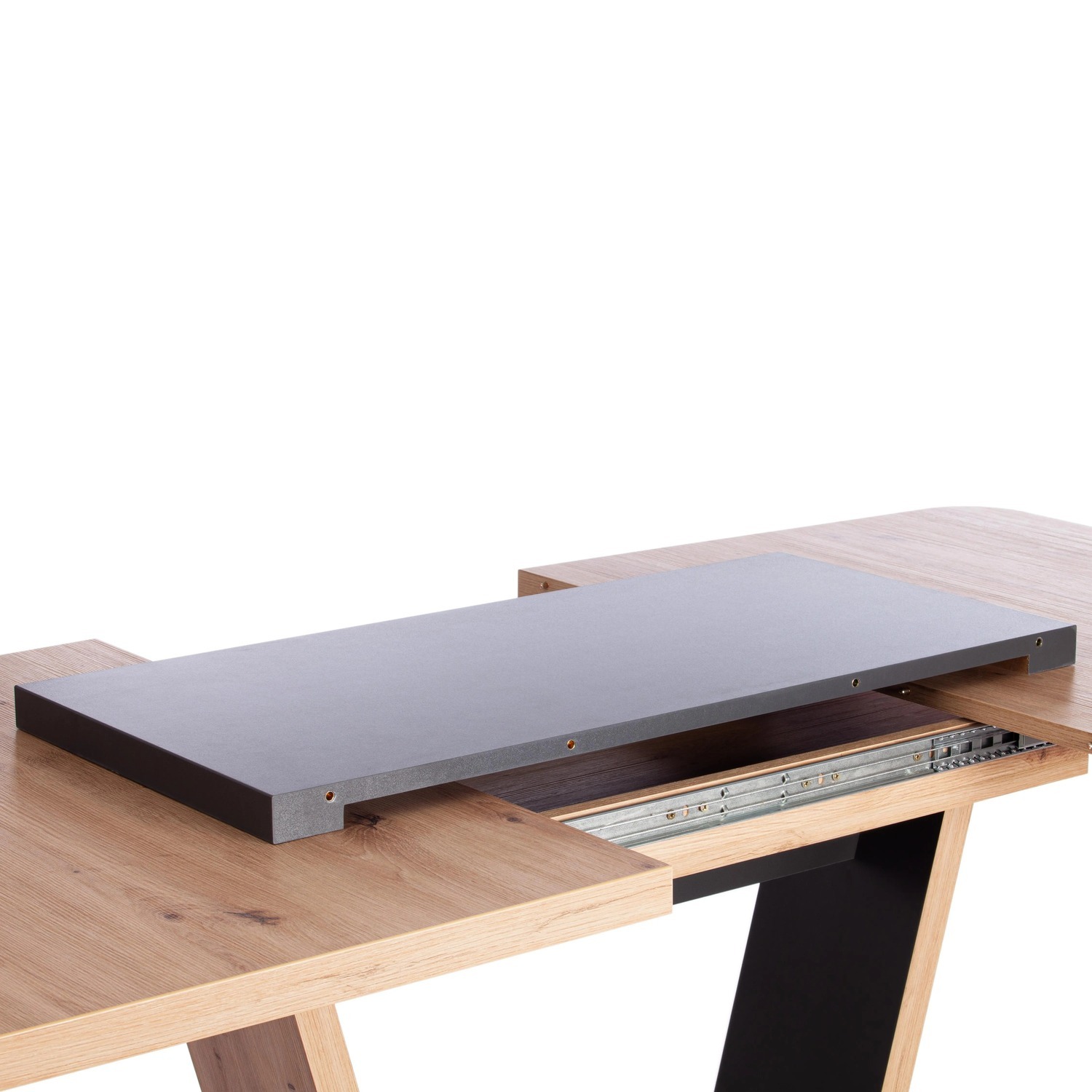 Визуально легкий стол-транформер VOX украсит собой любую домашнюю обстановку. Большая столешница, оригинальная ножка-опора и удачное сочетание цветов – идеальное решение для современного стильного интерьера. Размеры стола дают возможность с комфортом разместить от четырех до восьми человек. Вставка стола убирается горизонтально в подстолье. Края оклеены прочной пластиковой кромкой толщиной 2 мм. ЛДСП толщиной 18+18 мм. Механизм раздвижения – синхронного типа со стопором. Стол VOX отлично подойдёт для гостиной, для кухни или для загородного дома. Стол очень прост в сборке, инструкция по сборке прилагается.