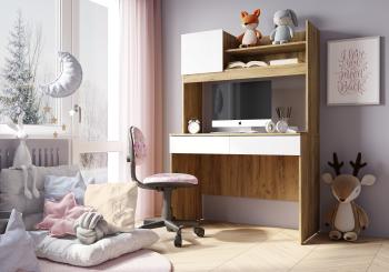 Письменный стол Селфи – грамотно продуманная рабочая зона, а также мечта любого подростка и его родителей. Это многофункциональный предмет мебели, который, несмотря на компактный размер, решает множество задач. На просторной столешнице хватит места для компьютера, открытая полка пригодится для предметов декора и книг, закрытые ниша и выкатной ящик можно использовать для школьных принадлежностей. Универсальная сборка отсутствует.