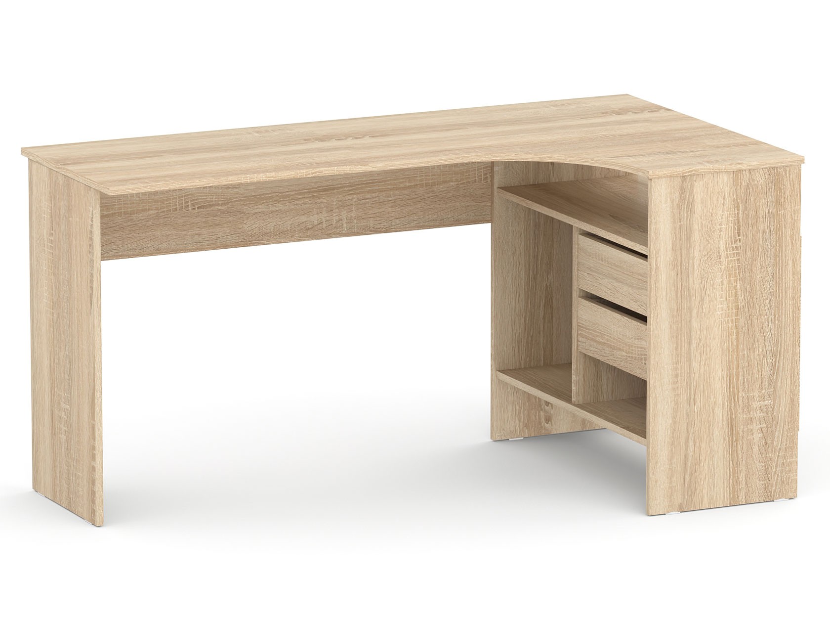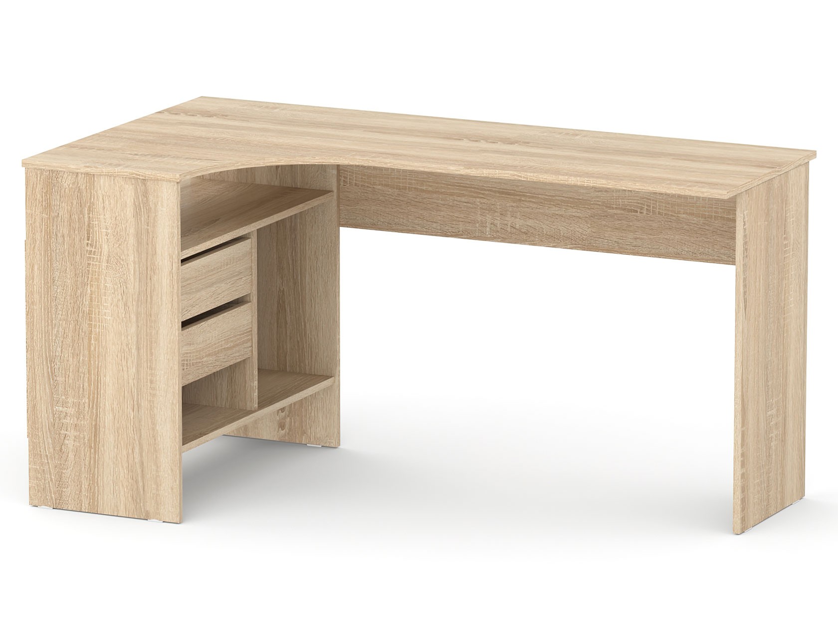 Угловая форма стола экономит место, создавая удобную рабочую зону. Широкая столешница вмещает несколько мониторов, ноутбук и канцелярские принадлежности. Выдвижные ящики с плавным механизмом (шариковые направляющие) подходят для хранения документов, папок или офисных мелочей. Открытые полки обеспечивают быстрый доступ к книгам или принтеру, а ниша для системного блока защищает технику от пыли и повреждений.