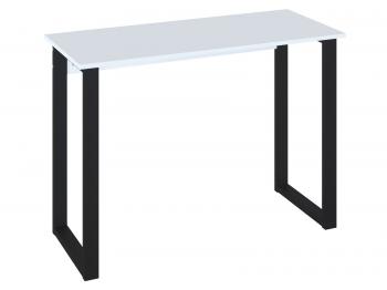Небольшой письменный стол в контрастном сочетании белого цвета столешницы с черными металлическими опорами в стиле лофт. Компактная модель стола разработана для создания рабочего пространства в незначительных помещениях благодаря размерам столешницы шириной 1048 мм и глубиной 446 мм. Металлические опоры обеспечивают прочность конструкции.