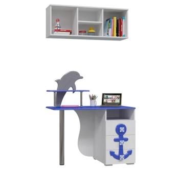Стол письменный П-2 Парус с очаровательным морским дизайном поможет создать необычайно удобное рабочее место для вашего ребенка. Стильное изделие имеет комфортную столешницу с закругленными уголками яркого синего цвета и левую стойку из хромированного металла. Тумба оборудована тремя выдвижными ящиками на шариковых направляющих и открытой нишей, декорирована якорем и оригинальными ручками.