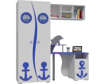 Мебель Парус выполнена в бело-синей цветовой гамме, что создаёт в комнате позитивную ауру, атмосферу безопасности и душевного расслабления.